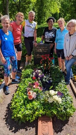 Dann laufen wir zur letzten und siebten Station des Marlene-Dietrich-Erinnerungslaufes, zu ihrem Grab auf dem Friedhof Friedenau. Bevor wir ihr Grab aufsuchen, stärken wir uns mit einem kühlen Getränk im Cafe Vienna und hören ihre Lebensgeschichte von ihrem ersten Film ihn Hollywood 1930 bis zu ihrem Tod in Paris 1992.